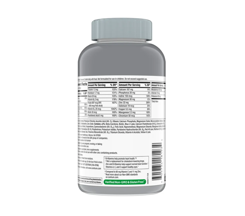 Es un multivitamínico diseñado para apoyar las necesidades nutricionales de los adultos mayores de 50 años, con 24 micronutrientes esenciales (vitaminas del complejo B, vitaminas A, C, D3, E, zinc, calcio, entre otros) para promover la salud del corazón, el cerebro, los ojos y el sistema inmunológico