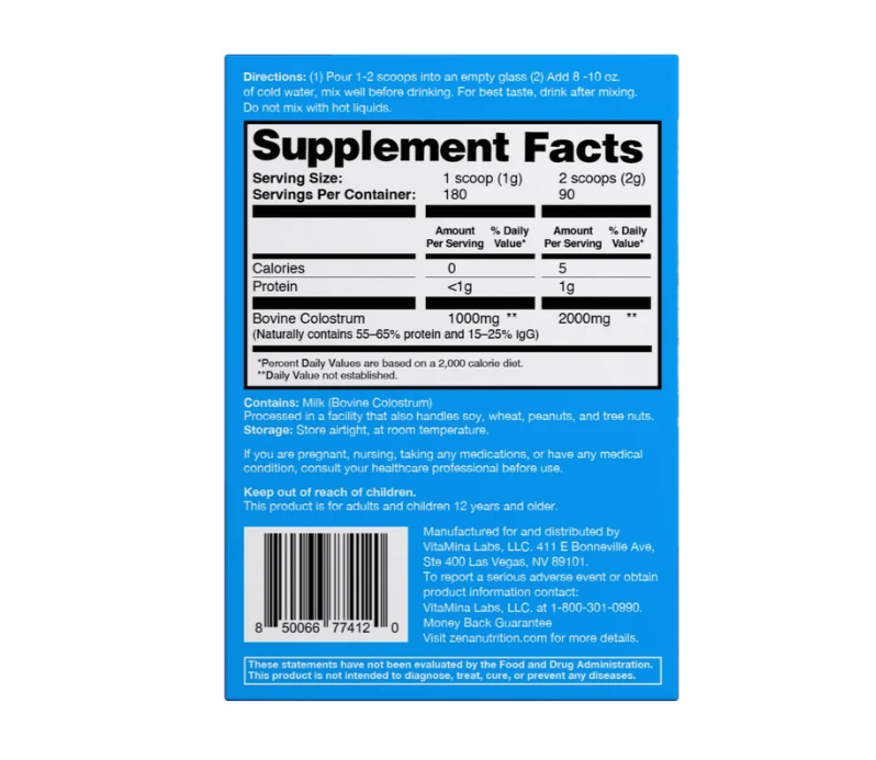 Zena Nutrition – Pure Colostrum 2000mg 90 servicios